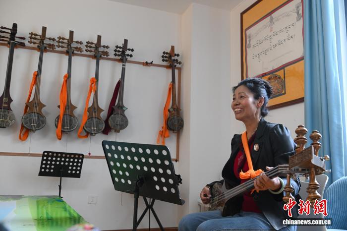 圖為民次旦卓瑪在八一社區(qū)老年活動(dòng)中心學(xué)習(xí)扎念琴。貢嘎來(lái)松 攝