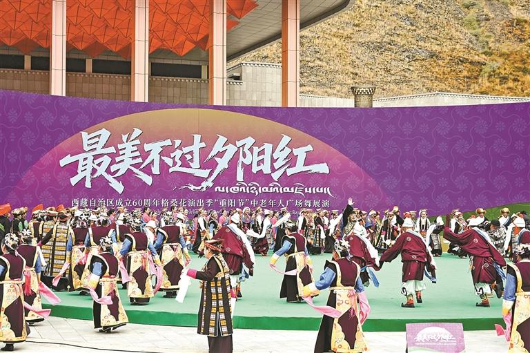 圖為“最美不過(guò)夕陽(yáng)紅”中老年人廣場(chǎng)舞展演現(xiàn)場(chǎng)。記者 歐珠次仁 攝