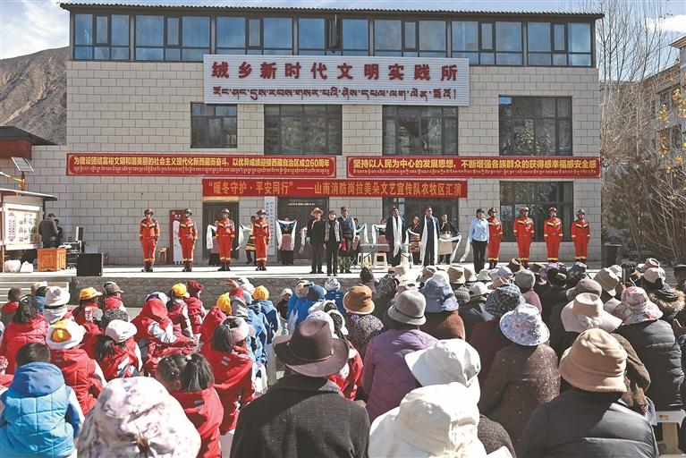 近日,山南市消防救援支隊(duì)崗拉美朵文藝隊(duì)走進(jìn)農(nóng)牧區(qū),帶著“暖冬情”奔走巡演,以群眾喜聞樂見的方式筑牢基層消防防線、守護(hù)千萬“平安家”,讓消防安全知識深入人心。