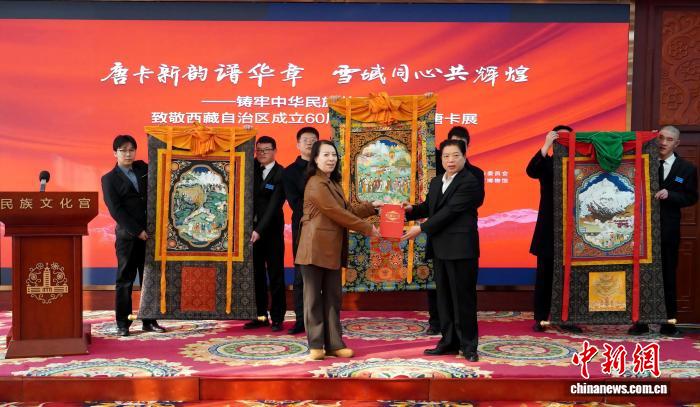 12月22日,“唐卡新韻譜華章 雪域同心共輝煌——鑄牢中華民族共同體意識”主題展覽在北京民族文化宮展覽館正式啟幕。此次展覽以唐卡這一非遺藝術(shù)為載體,全景呈現(xiàn)西藏自治區(qū)成立60年來的發(fā)展巨變,尤其聚焦黨的十八大以來的歷史性跨越,為觀眾獻上一場融合傳統(tǒng)技藝與時代精神的文化盛宴。