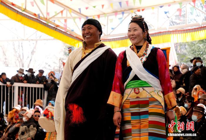 1月2日,“新歲風華,衣彩拉薩”2026年拉薩新年服飾秀子活動在布達拉宮腳下的宗角祿康公園舉行?;顒臃譃槔_非物質(zhì)文化遺產(chǎn)代表性項目演藝服飾秀與農(nóng)牧民婦女“村T”秀兩部分,通過演藝服飾與日常生活勞動服飾及場景的展示,生動呈現(xiàn)拉薩獨特的地域文化與民族風情。圖為拉薩非物質(zhì)文化遺產(chǎn)代表性項目演藝服飾秀現(xiàn)場。中新社記者 李林 攝