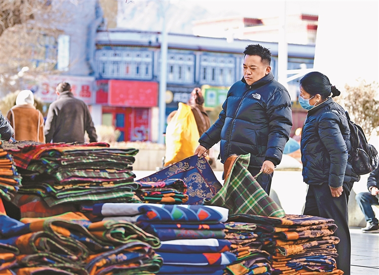 隨著春節(jié)、藏歷新年臨近,拉薩街頭年味漸濃,各大市場(chǎng)也熱鬧起來(lái)。八廓商城里更是人頭攢動(dòng),迎來(lái)了一年中最紅火繁忙的時(shí)節(jié)。市民們穿梭于各個(gè)攤位之間,精心挑選著藏裝、切瑪盒、門(mén)簾等年貨,為迎接佳節(jié)做準(zhǔn)備。熙熙攘攘的人流、琳瑯滿(mǎn)目的商品……處處洋溢著喜慶、溫暖的氣氛。
