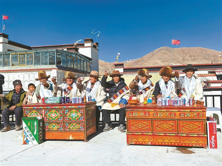 分紅當(dāng)日,定結(jié)縣郭加鄉(xiāng)乃村群眾共同舉杯,歡慶日喀則農(nóng)事新年。記者 楊子彥 馬曉艷 旦增嘎瓦 攝