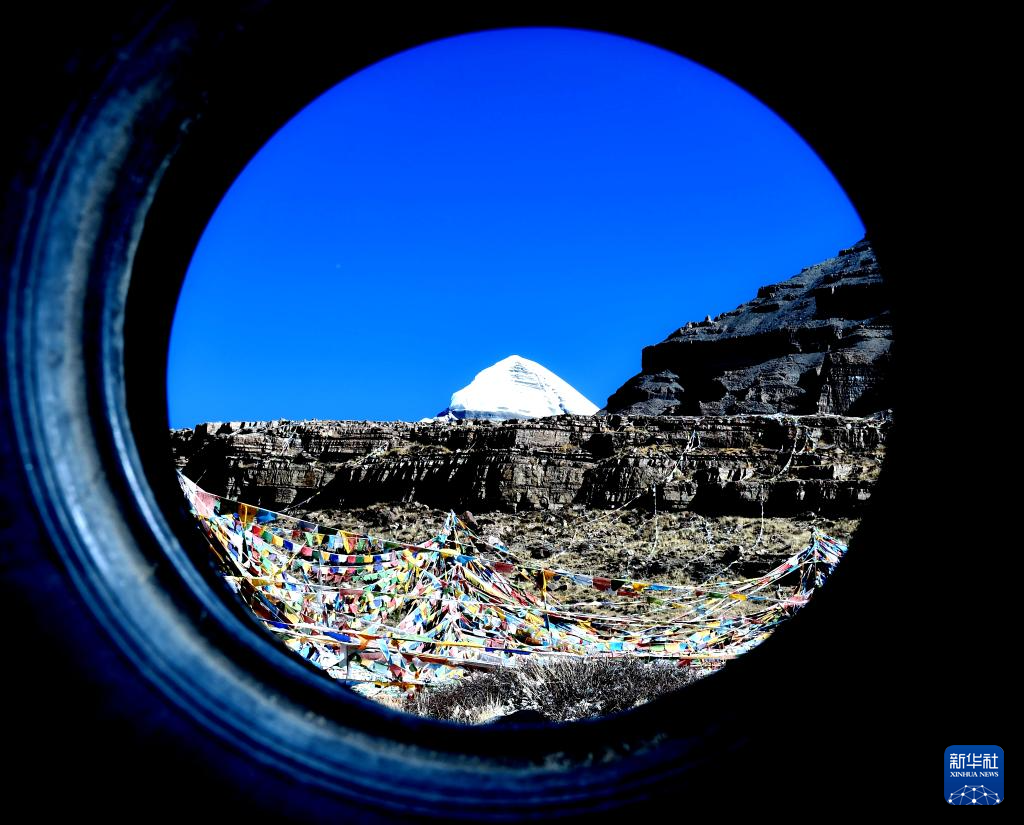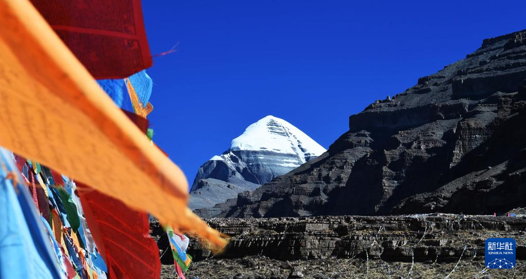 岡仁波齊峰與經(jīng)幡(1月30日攝)。新華社記者 關(guān)明輝 攝