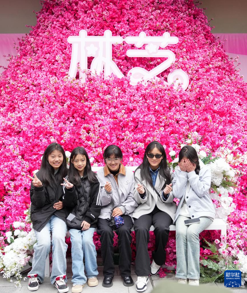 3月31日,游客在林芝市第二十一屆桃花旅游文化節(jié)活動(dòng)現(xiàn)場拍照留念。新華社記者 丁汀 攝