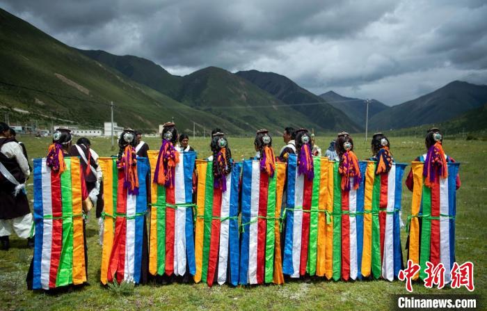 草原上正在展示直孔普堆巴宣舞?!⒅铱?攝