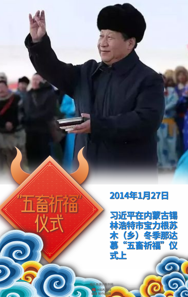 習(xí)近平在內(nèi)蒙古錫林浩特市寶力根蘇木(鄉(xiāng))冬季那達慕“五畜祈?!眱x式上