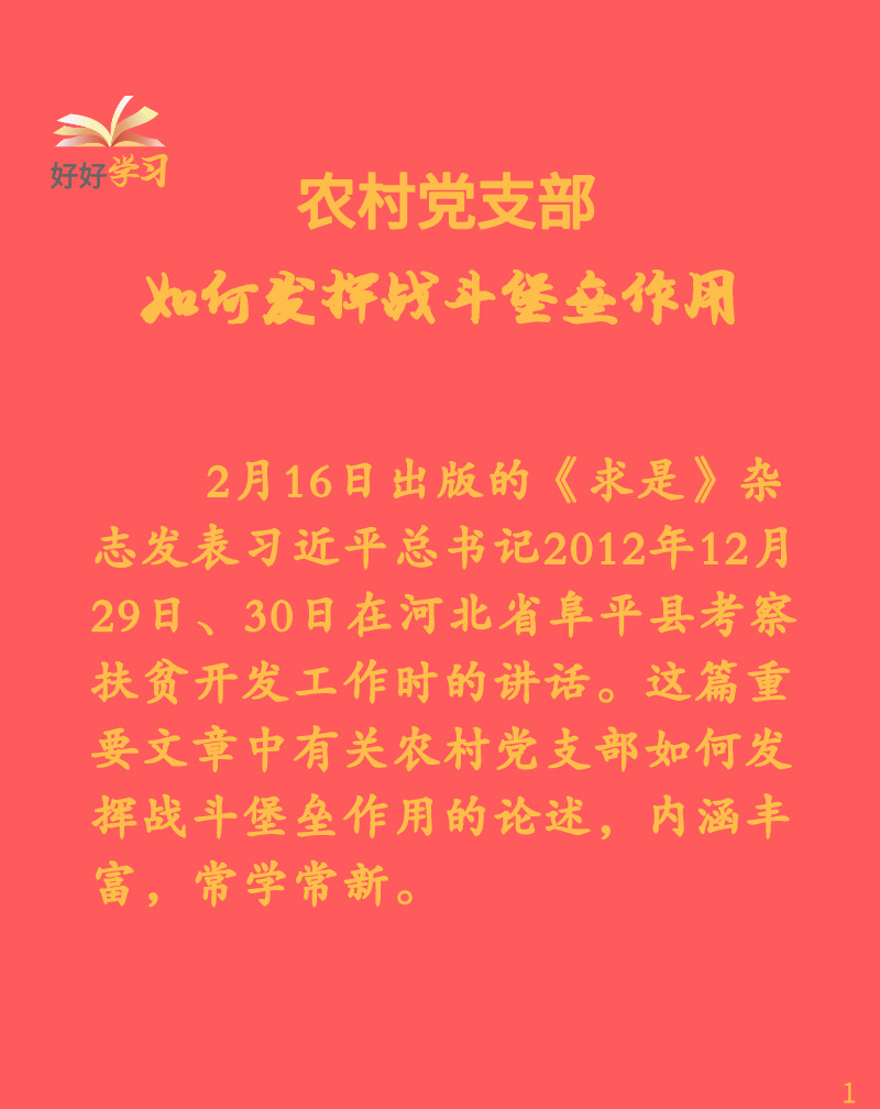 好好學(xué)習(xí)|農(nóng)村黨支部如何發(fā)揮戰(zhàn)斗堡壘作用