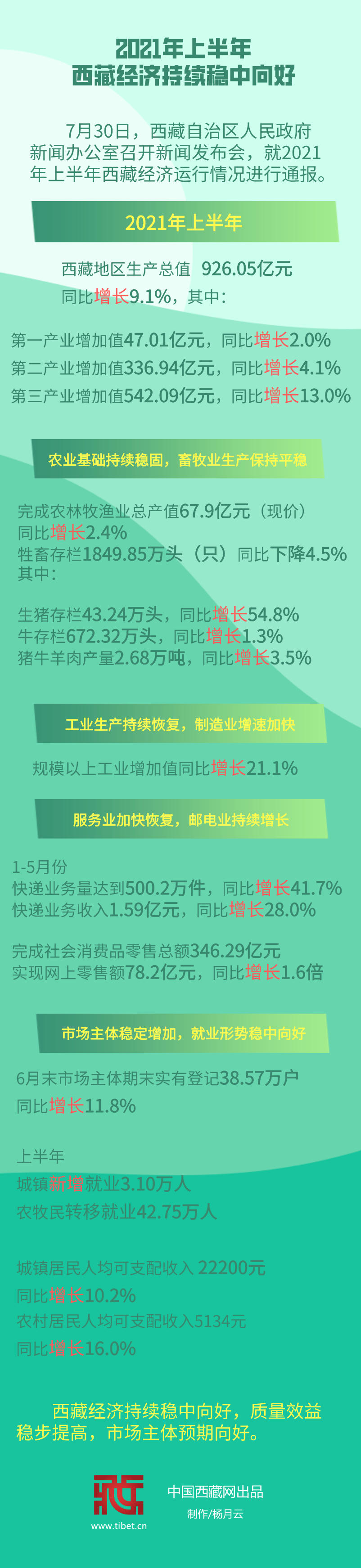 長圖丨2021年上半年西藏經(jīng)濟(jì)持續(xù)穩(wěn)中向好