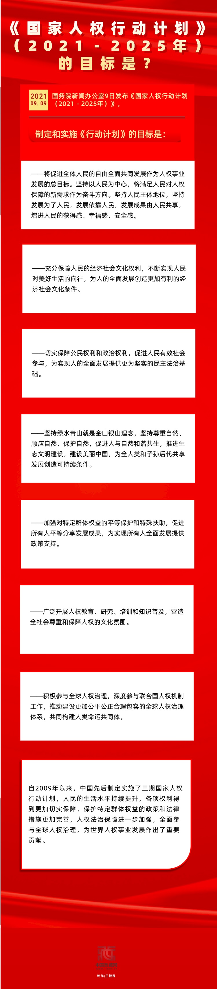 9月9日,國務(wù)院新聞辦公室發(fā)布《國家人權(quán)行動計(jì)劃(2021-2025年)》,確定2021-2025年尊重、保護(hù)和促進(jìn)人權(quán)的階段性目標(biāo)和任務(wù)[詳細(xì)] -