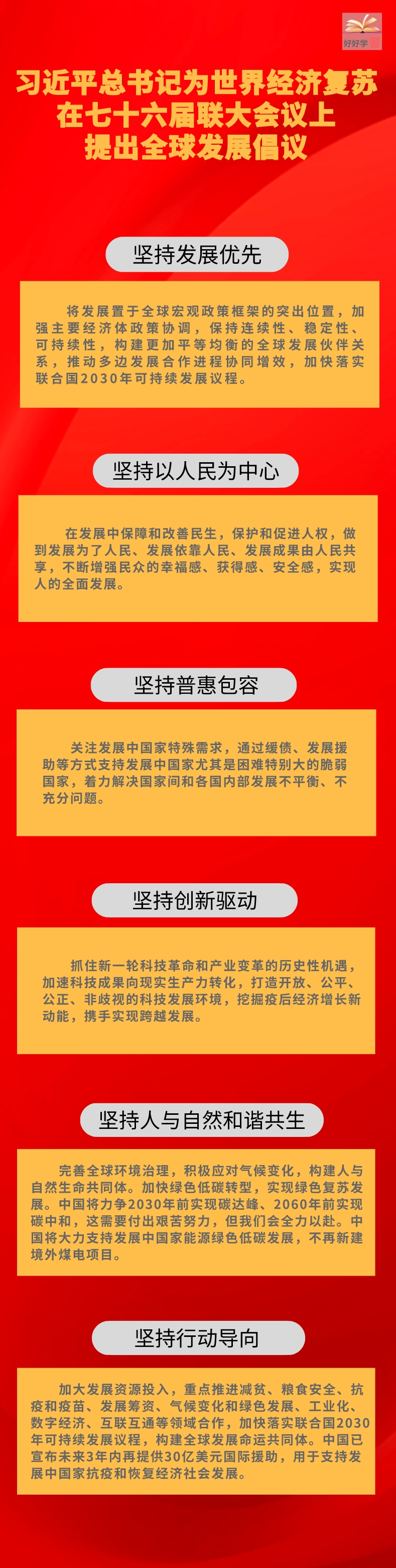 長圖|習近平總書記為世界經(jīng)濟復(fù)蘇在七十六屆聯(lián)大會議上提出全球發(fā)展倡議