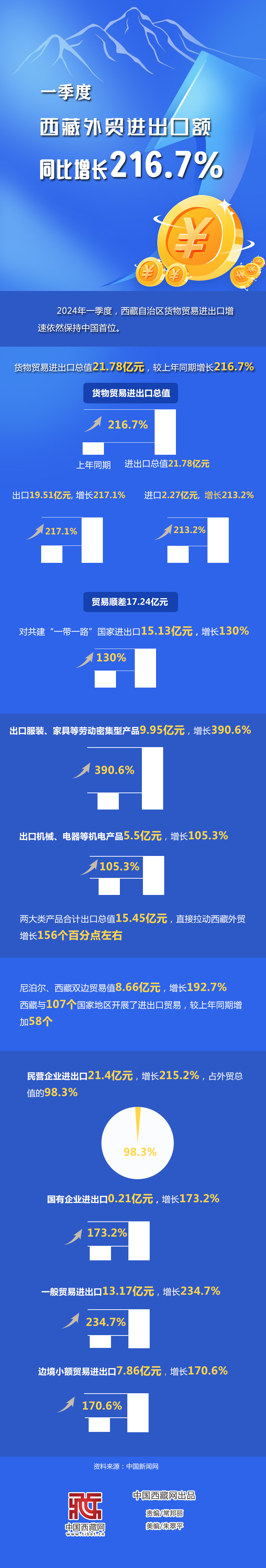 一季度西藏外貿(mào)進出口額同比增長216.7%