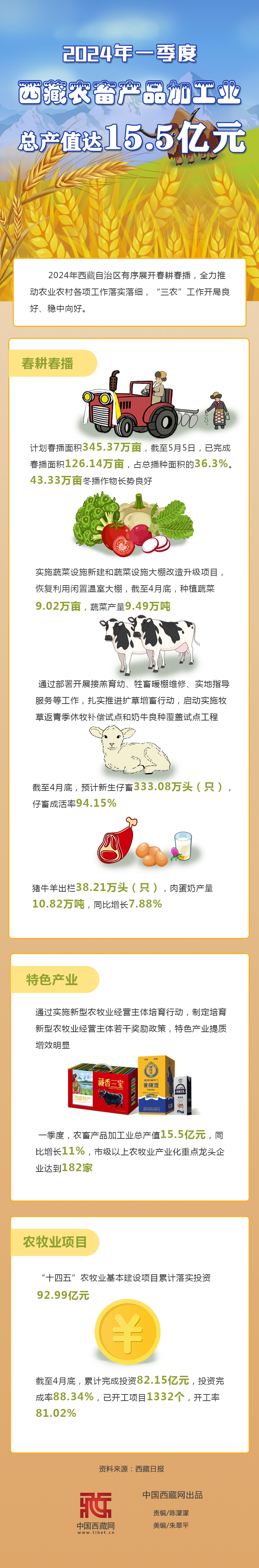 圖解|2024年一季度西藏農(nóng)畜產(chǎn)品加工業(yè)總產(chǎn)值達(dá)15.5億元