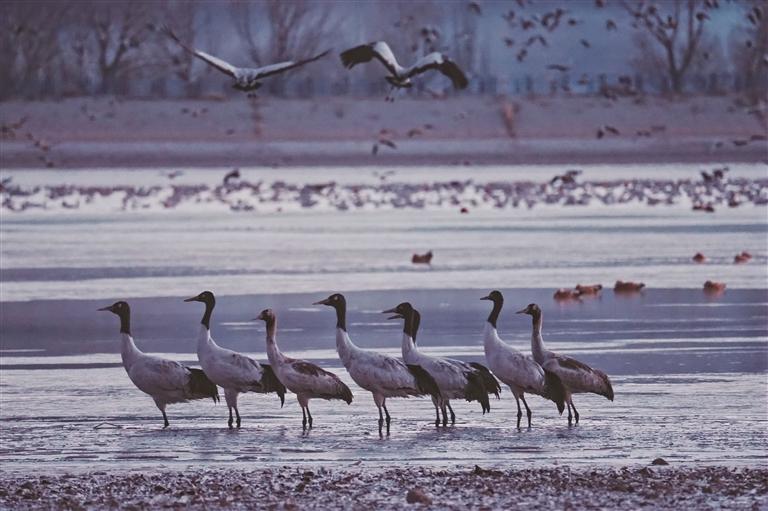 1月17日,天還未亮,拉薩市林周縣卡孜水庫(kù)的上空便回蕩著黑頸鶴的鳴唱。