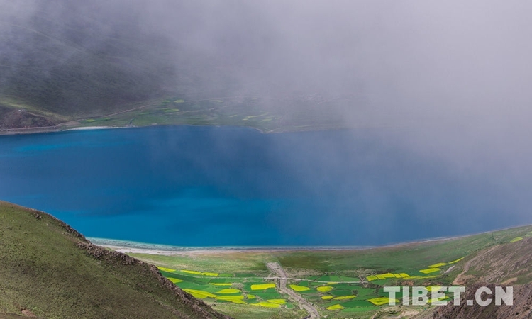 圖為云霧繚繞中的羊卓雍錯 攝影:趙耀