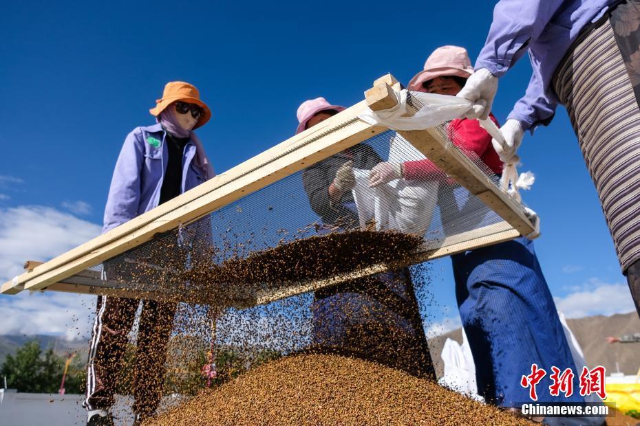 6月9日,西藏拉薩,工作人員正在篩選樹(草)種。當(dāng)日,西藏自治區(qū)林業(yè)和草原局在拉薩市組織開展首次飛播造林工作,此次飛播造林共設(shè)計9個飛播作業(yè)區(qū),其中拉薩市7個,山南市2個,由拉薩雪鷹通用航空公司負責(zé)飛機播種。設(shè)計飛播造林面積21.8萬畝,設(shè)計飛機播種沙棘、砂生槐等樹(草)種約119.3噸。中新社記者 何蓬磊 攝