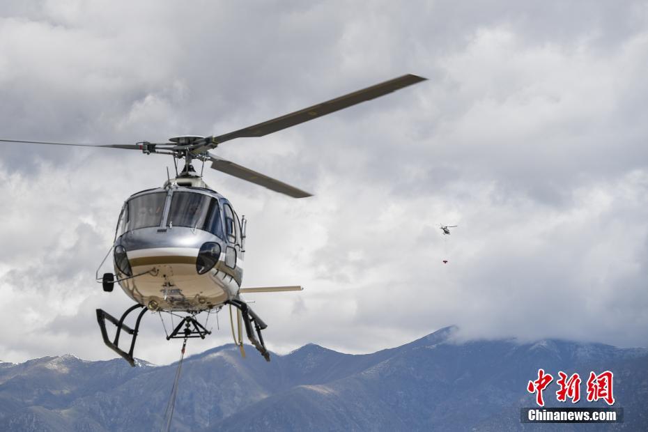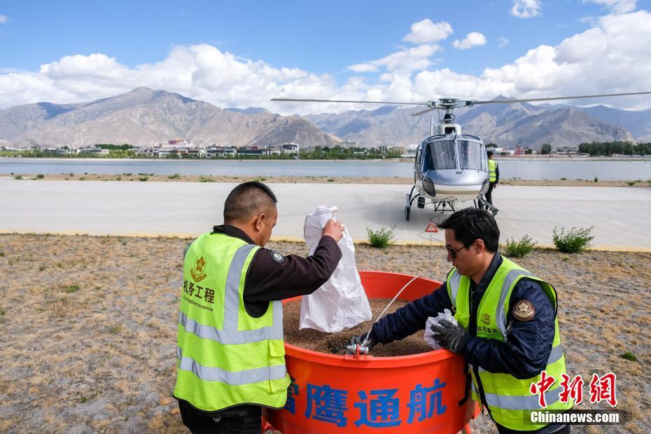 6月9日,西藏拉薩,拉薩雪鷹通航直升機從機場起飛前往造林點。當(dāng)日,西藏自治區(qū)林業(yè)和草原局在拉薩市組織開展首次飛播造林工作,此次飛播造林共設(shè)計9個飛播作業(yè)區(qū),其中拉薩市7個,山南市2個,由拉薩雪鷹通用航空公司負責(zé)飛機播種。設(shè)計飛播造林面積21.8萬畝,設(shè)計飛機播種沙棘、砂生槐等樹(草)種約119.3噸。中新社記者 何蓬磊 攝