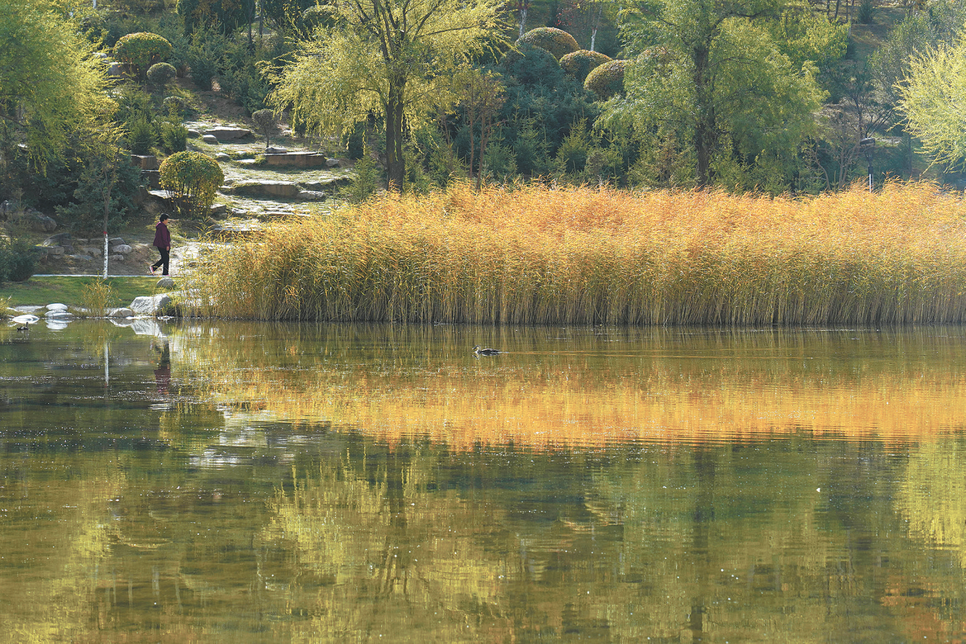 “你看,現(xiàn)在的北山腳下有花有樹有池塘。雖然現(xiàn)在已經(jīng)是秋季,但是這里的各色彩葉植被讓秋天的景色更加迷人。在這樣的環(huán)境里晨練遛彎,身心都舒暢許多?!笔忻裆蛘冁氛f。