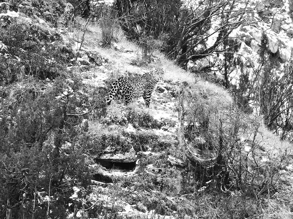 三江源地區(qū)是全球金錢豹種群分布海拔最高的區(qū)域之一,對金錢豹未來保護(hù)和科學(xué)研究有重要價值。研究表明,該區(qū)域擁有豐富的頂級食肉動物種群,呈現(xiàn)出完整的生態(tài)系統(tǒng)狀態(tài),具有極為重要的保護(hù)價值和地位。其中,分布著10只金錢豹個體和43只雪豹個體,以及棕熊、猞猁、狼、豺等多種大型食肉動物。此前,監(jiān)測到金錢豹帶著幼崽的視頻資料,表明金錢豹是實現(xiàn)本地種群繁衍的物種。