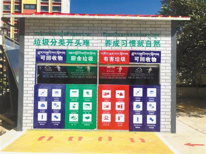 圖為拉薩市城關(guān)區(qū)樂(lè)業(yè)苑內(nèi),分類(lèi)垃圾投放箱房。 記者 李梅英 攝