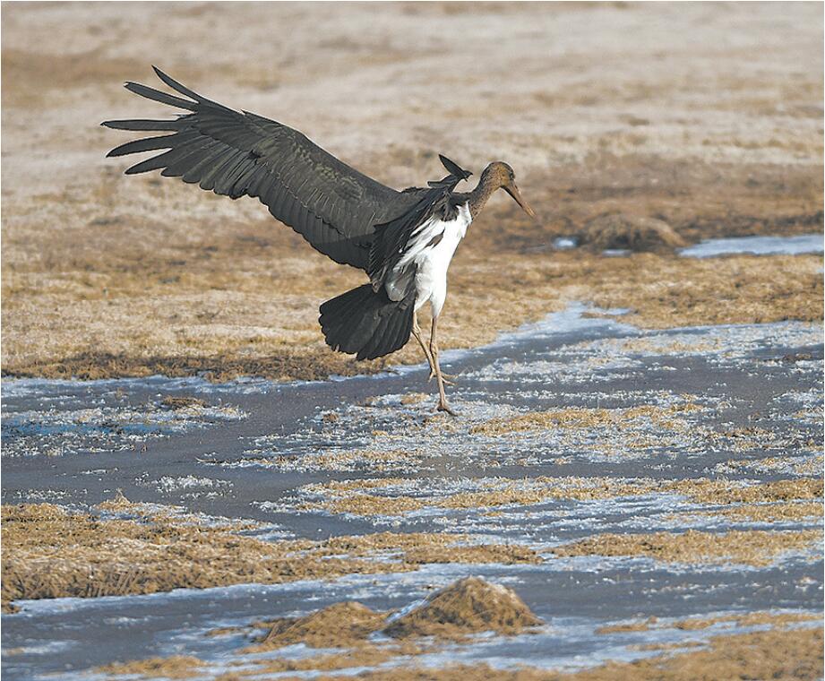 12月6日,一只黑鸛在西寧市北川河濕地公園內(nèi)嬉戲。近日,位于青海省西寧市的北川河濕地公園迎來兩只黑鸛。黑鸛屬鸛形目、鸛科,國家一級(jí)保護(hù)動(dòng)物,目前全世界僅存3000只左右,屬于國寶級(jí)珍禽。新華社記者吳剛攝