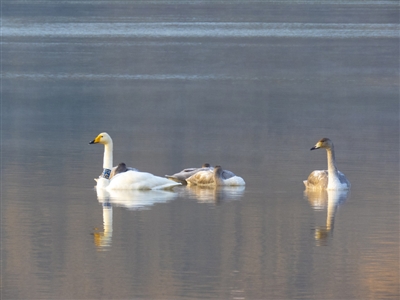 市民趙女士告訴記者,這些年青海生態(tài)環(huán)境建設(shè)成效顯著,良好的自然生態(tài)為大天鵝等候鳥提供了安全、適宜、穩(wěn)定的棲息環(huán)境和越冬場所。12月12日一大早,她和朋友一起駕車從西寧出發(fā),到海東市化隆縣群科新區(qū)黃河水面拍攝大天鵝。早上9時許,在群科新區(qū)聽水灣西側(cè)的黃河岸畔水面上發(fā)現(xiàn)有數(shù)十只天鵝,它們時而悠然棲息,時而三五成群嬉戲,時而震動翅膀,“我看到它們飛到岸邊閑庭漫步時,抓緊時間按下快門拍照,在查看圖片時才發(fā)現(xiàn)其中一只大天鵝的脖頸上戴著一個‘項圈’,大家都很好奇,這個‘項圈’是做什么用的?”趙女士說。