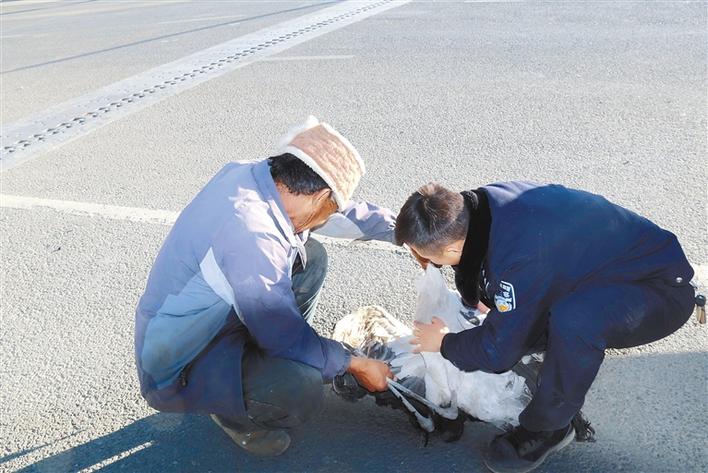民警迅速到達(dá)現(xiàn)場(chǎng)了解得知:報(bào)案人普某路過年楚河大橋時(shí)發(fā)現(xiàn)一只飛行中的鳥撞到電線后落地,導(dǎo)致其右側(cè)翅膀受傷,無法正常飛行,遂報(bào)警求助。經(jīng)過仔細(xì)觀察,民警懷疑該鳥為國(guó)家一級(jí)保護(hù)動(dòng)物——黑頂鶴,于是在上報(bào)指揮中心的同時(shí),與桑珠孜區(qū)林業(yè)局取得聯(lián)系。