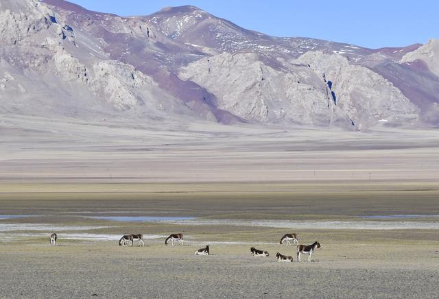藏北高原上的藏野驢(1月15日攝)。新華社記者 沈虹冰 攝