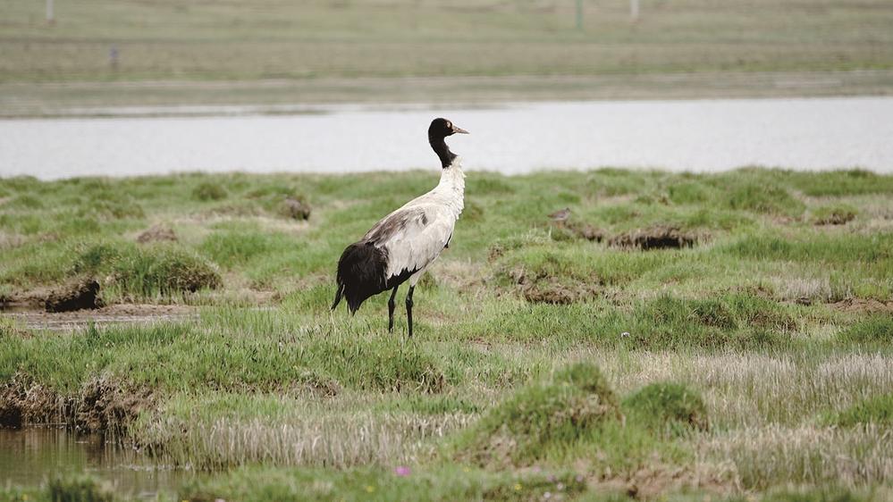 玉樹(shù)隆寶濕地的黑頸鶴。