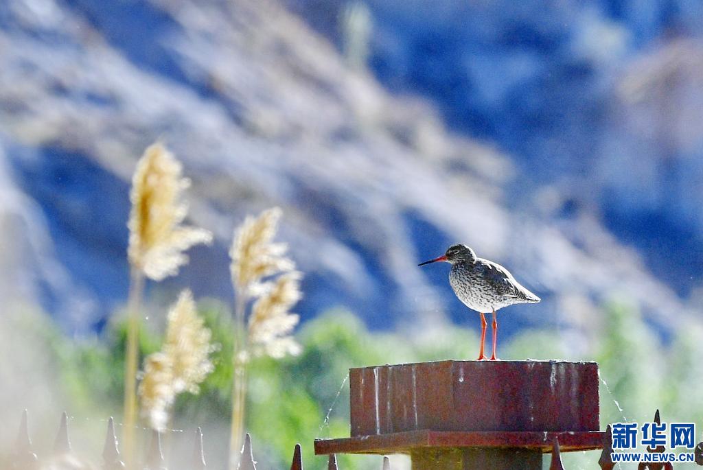 在拉魯濕地拍攝的紅腿鷸(6月2日攝)。新華社記者 張汝鋒 攝