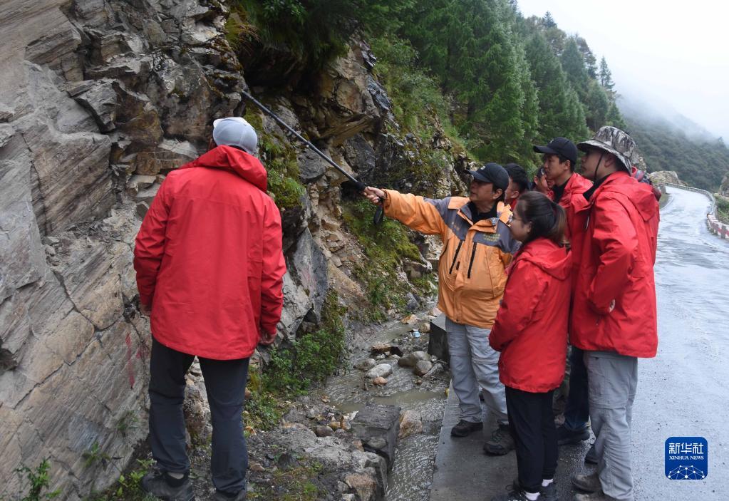 9月7日,在西藏日喀則市一處山體,中科院地理科學(xué)與資源研究所客座教授李渝生(左二)和年輕的科考隊(duì)員分析地質(zhì)災(zāi)害問題。新華社記者 杜剛 攝