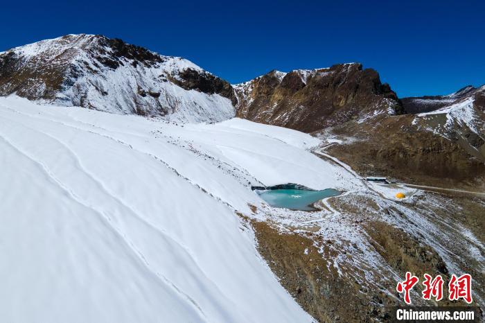 圖為廓瓊崗日冰川的半山湖泊。 江飛波 攝