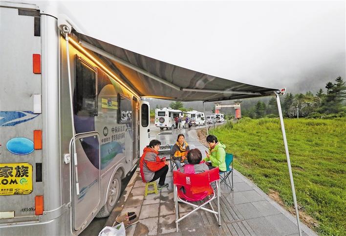 圖為國慶期間,自駕房車的游客在環(huán)境優(yōu)美的吉隆鎮(zhèn)吉普村享受旅途樂趣。記者 白娟 張斌 格桑吉美 攝