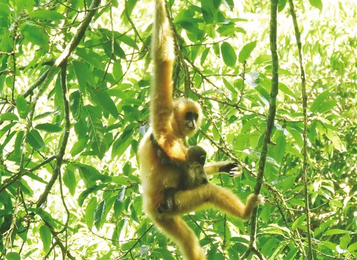 這是2021年5月拍攝的海南長(zhǎng)臂猿B群幼猿。