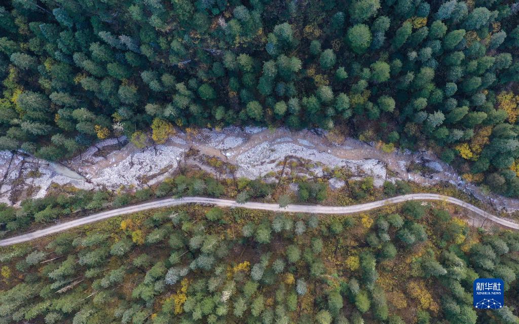 巴巴溝景區(qū)風(fēng)光(10月23日攝,無(wú)人機(jī)照片)。新華社記者 王曦 攝