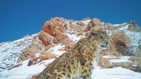 這些障礙沒攔住姜楠一行,約3個小時后,他們抵達了第一個雪豹觀測點。姜楠蹲下,檢查紅外相機拍攝到的畫面,確認(rèn)是否有野生動物出現(xiàn)。相機完好無損并拍到雪豹,是最為理想的狀態(tài),但相機被毀壞也是常有的事。當(dāng)天,她的同事負(fù)責(zé)另一處觀測點,上山后發(fā)現(xiàn)相機壞了,只能原路返回,再跑一趟。