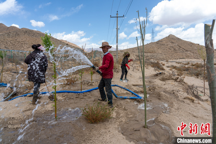他說,雅魯藏布江兩岸的沙地多是流動沙,沙土沒有樹木生長所需的營養(yǎng),種樹前先要填生物肥、秸稈等。此外,樹苗還面臨夏季沙地溫度過高以及水源缺乏等問題。“雖然地處江邊,但種樹點離河道有五六公里甚至更遠(yuǎn)?!泵侠麞|說,他們篩選、馴化本地植物作為種苗,澆灌水源采取就地打井的方式取水,在沙地上植樹造林。