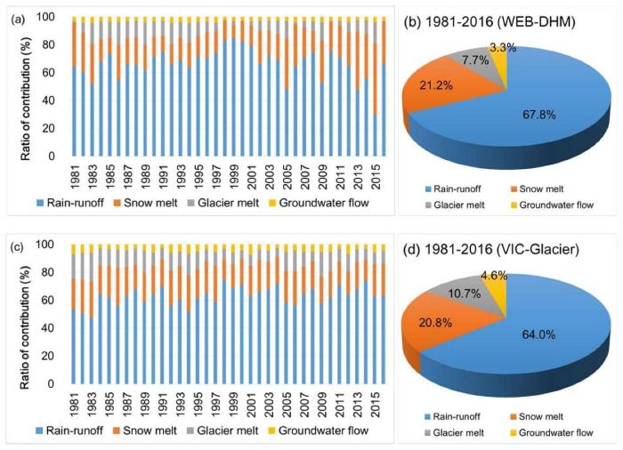 王磊表示,依托監(jiān)測網絡和其他多源數(shù)據(jù),研究團隊生成了1981-2019年這38年內雅魯藏布江流域高時空分辨率降水數(shù)據(jù),在此基礎上進一步通過對比、綜合主流冰凍圈水文模型的徑流組分模擬,研究得出的結果顯示,雅魯藏布江流域(奴下水文站以上)新的降雨、融雪、冰川融化和地下水補給分別占總徑流的66%、21%、9%和4%。