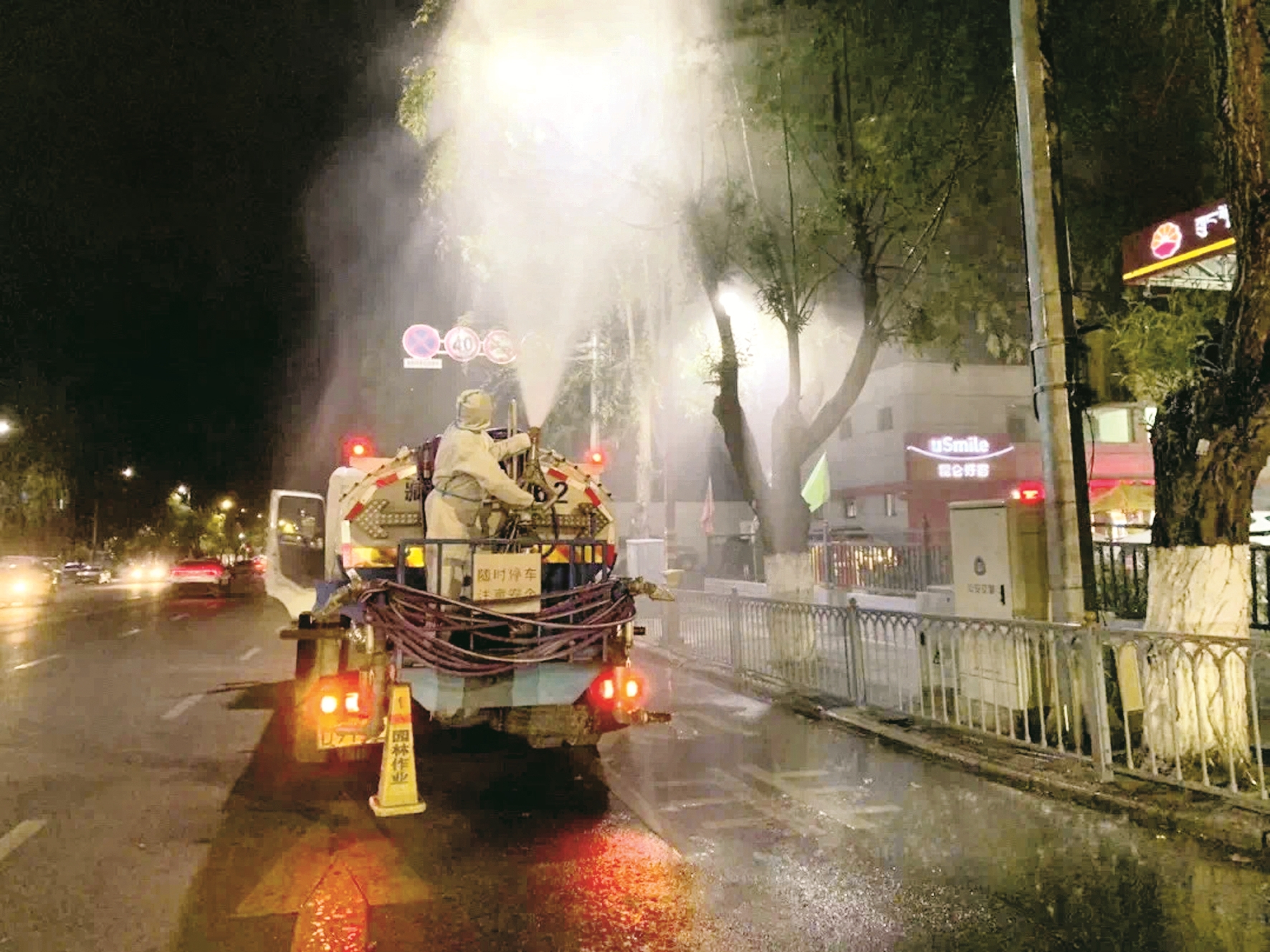 圖為園林公司工作人員正在對道路兩旁樹木進(jìn)行噴藥作業(yè)。 拉薩融媒記者 次仁卓嘎攝
