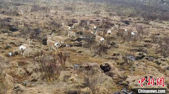 圖為藏原羚種群們?cè)谏狡轮行蓓??!〔苊皴| 攝