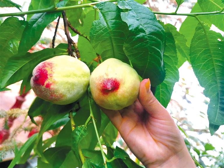 但記者一路行來,發(fā)現(xiàn)駛?cè)氚l(fā)展快車道的那曲不僅有樹,還有很多樹!不僅有常見的耐寒易活的松柏、楊柳,還有芭蕉、三角梅等等,只是還不夠大不夠多,不太容易發(fā)現(xiàn)而已。6月3日,本報(bào)記者甚至在海拔4750米的那曲市安多縣扎仁鎮(zhèn)的溫室大棚里采摘了剛剛成熟的桃子,這樣的奇跡簡(jiǎn)直讓人難以置信!