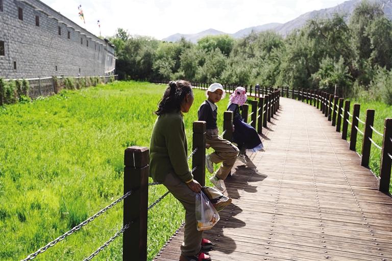 拉薩濱河公園是依托拉薩河3號(hào)閘建成的一處寬闊的濱水景觀和生態(tài)濕地長(zhǎng)廊,在這里不僅能看到水光瀲滟的拉薩河,還能漫步在健步道欣賞沿途風(fēng)景。順著步道往里走,道路兩旁花朵開(kāi)得嬌艷,在綠葉的映襯下閃爍著耀眼的光彩。來(lái)到球場(chǎng)邊,目光隨著那群年輕的身影轉(zhuǎn)動(dòng),他們身姿矯健,在奔跑追逐中揮灑汗水,洋溢著青春的活力。