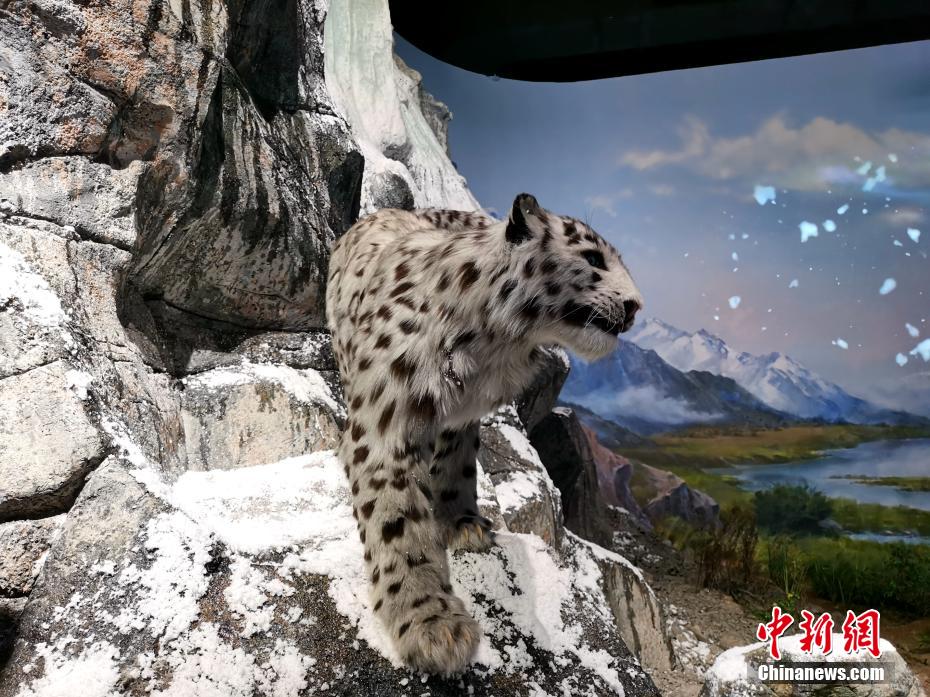 日前,中新網(wǎng)記者實(shí)地探訪即將落成的祁連山國家公園(青海片區(qū))生態(tài)科普館。正在進(jìn)入建設(shè)收尾階段的該館是祁連山國家公園青海片區(qū)唯一一個(gè)以國家公園為主題的自然類科普館,包含巍巍祁連、中國濕島、多彩生命、歷史使命、影院、文創(chuàng)教學(xué)區(qū)等六個(gè)展區(qū),充分展示祁連山國家公園自然生態(tài)系統(tǒng)、珍稀動植物多樣性、生態(tài)文化等內(nèi)容。圖為“雪山之王”雪豹模型。 張?zhí)砀?攝