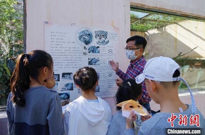 圖為青海野生動(dòng)物救護(hù)繁育中心副主任向?qū)W生介紹荒漠貓?!●R銘言 攝