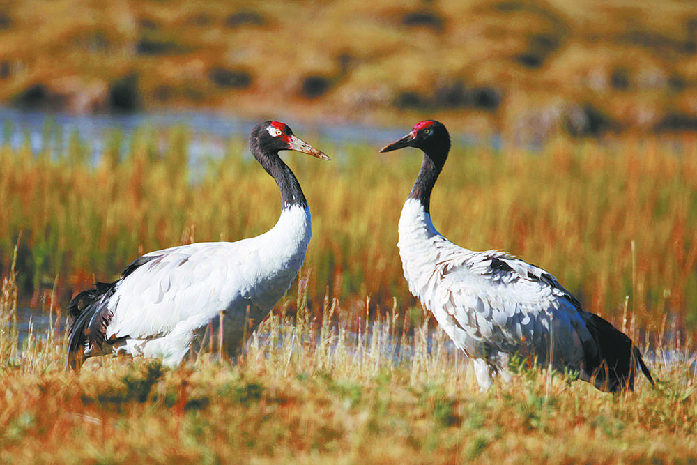 黑頸鶴“夫妻”。青海湖國(guó)家級(jí)自然保護(hù)區(qū)管理局供圖