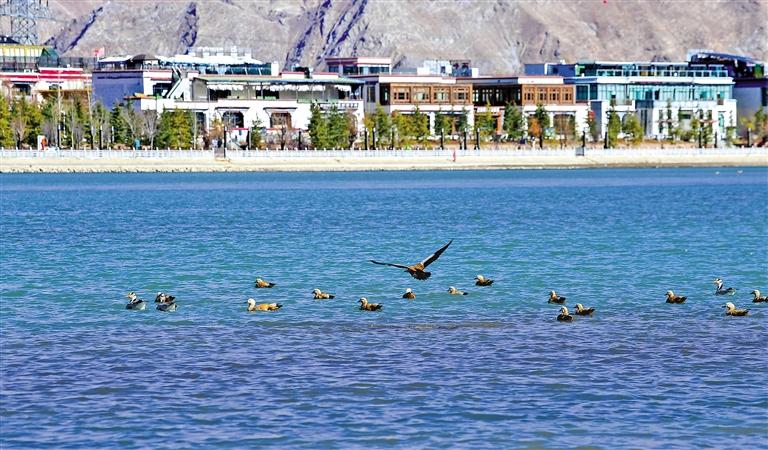 冬日,眾多鳥類匯聚拉薩河畔,勾畫出一道美麗的“飛翔風景線”。