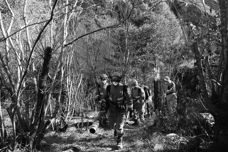 陡峭的懸崖、崎嶇的山路、布滿荊棘的叢林……消防員們背負(fù)著沉重的防火裝備翻山越嶺,腳、肩膀被磨出血泡,手、臉被劃出一道道口子,巡山時每名消防員每天會“報廢”一雙襪子。盡管身上傷痕累累,他們卻將裝備維護得很好。亞東駐防分隊分隊長次仁多布拉說:“26斤的防火裝備加上消防員們身上的其他裝備,全部加起來一共有50斤左右。每個裝備定人定位,所有人都像愛護眼睛一樣愛護裝備,保證裝備始終保持良好的戰(zhàn)備狀態(tài)?!?/p>