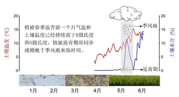 論文第一作者、中科院青藏高原所博士研究生馬鵬飛表示,研究團(tuán)隊(duì)在青藏高原上連續(xù)兩年的實(shí)驗(yàn)觀測(cè)數(shù)據(jù)表明:增雨普遍導(dǎo)致紫花針茅、大花嵩草、釘柱委陵菜3個(gè)優(yōu)勢(shì)物種返青期提前,而增溫則對(duì)其返青期影響不顯著;雖然枯黃期對(duì)于溫度和降水均有響應(yīng),但不論是否增溫,增雨都能顯著推遲3個(gè)優(yōu)勢(shì)物種枯黃期,且增溫與增雨無(wú)交互效應(yīng);3個(gè)優(yōu)勢(shì)種返青期同步或稍晚于雨季來(lái)臨,春季降水增加使雨季來(lái)臨時(shí)間提前進(jìn)而促進(jìn)植被返青。