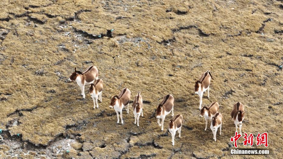 高原初春,馬鹿、藏野驢、藏狐等野生動物在祁連山國家公園青海片區(qū)天峻縣境內草場上覓食、棲息,悠閑自在。青海省海西蒙古族藏族自治州天峻縣大部地處祁連山國家公園青海片區(qū),近年來,該縣開展生態(tài)環(huán)境綜合治理,生態(tài)環(huán)境持續(xù)改善,珍稀野生動物種群數(shù)量不斷增加。圖為航拍成群的藏野驢在天峻縣草場上覓食棲息。