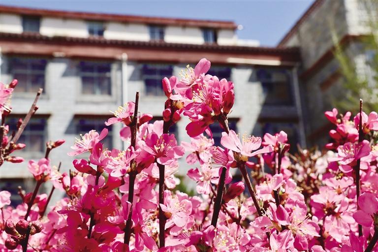 那么,去哪里查收這份“春日限定大禮包”呢?最近幾天,記者的朋友圈都被帕崩崗的美景霸屏了,一波又一波的朋友到這里打卡。除了去帕崩崗賞桃花,更不容錯(cuò)過(guò)的一定是拉薩大街小巷以及公園中驚鴻一瞥的美景。宗角祿康公園植被繁茂、古樹(shù)較多,一到春季,玫粉色的榆葉梅綻放枝頭,層層花瓣在陽(yáng)光的照耀下嬌俏動(dòng)人,一樹(shù)粉色花朵倒映在幽綠的湖水中,盡顯詩(shī)意。此外,緊鄰羅布林卡的羅堆東路也有意想不到的美景,每到這個(gè)季節(jié),紅葉李便會(huì)沿路盛開(kāi),淡粉色的花瓣搭配深紅色的花蕊,甚是好看。金珠西路沿途的景色也令人耳目一新,淡粉色的花朵肆意綻放,等紅燈時(shí)的心情因這些花朵變得不再焦灼。